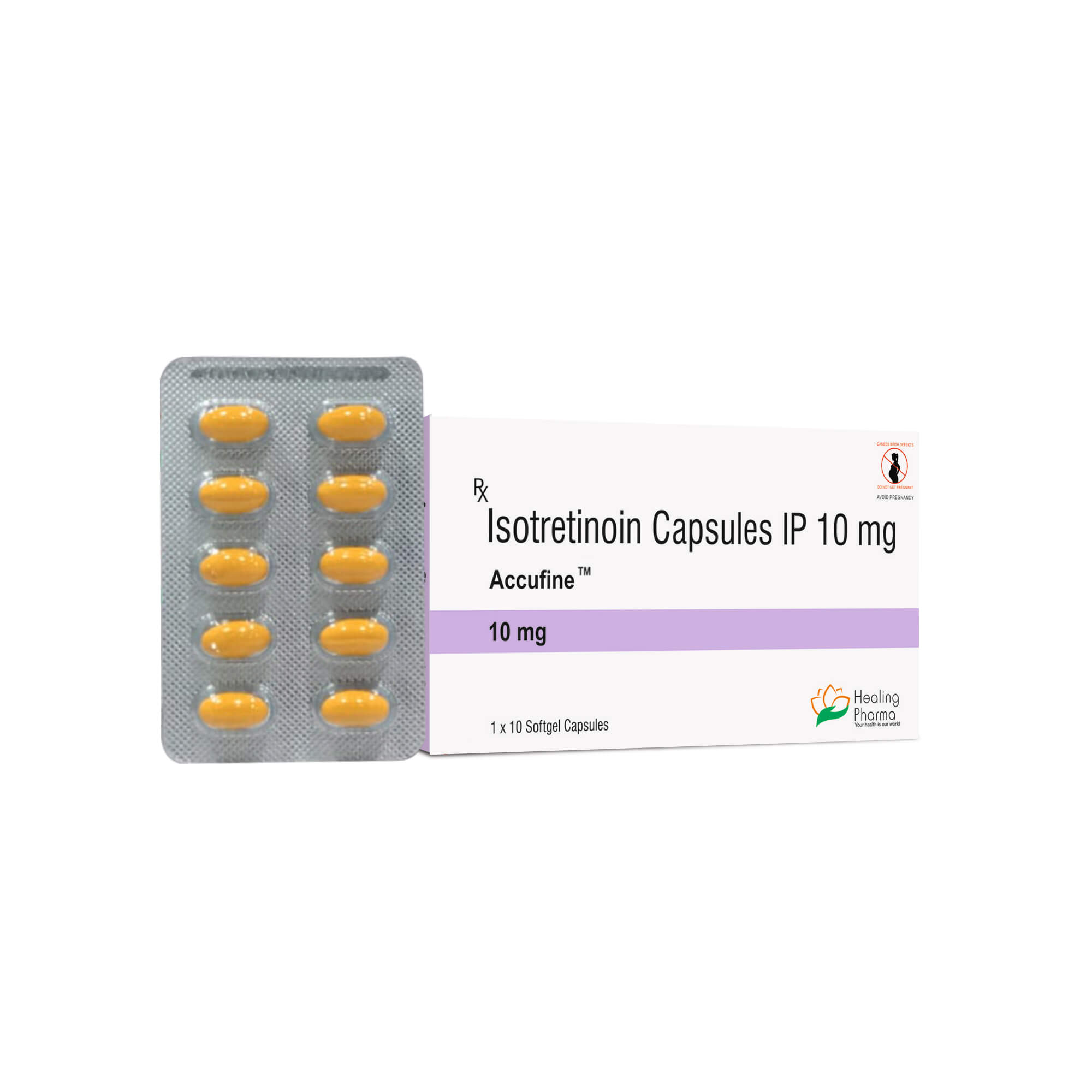 Accutane 10 mg capsules contain isotretinoin, a potent retinoid that treats scarring acne. The vitamin A derivative reduces oil production, fights bacteria, and unclogs pores. The powerful drug treats severe acne that other treatments cannot. The medicine is advised to be taken under the prescription of a verified doctor.