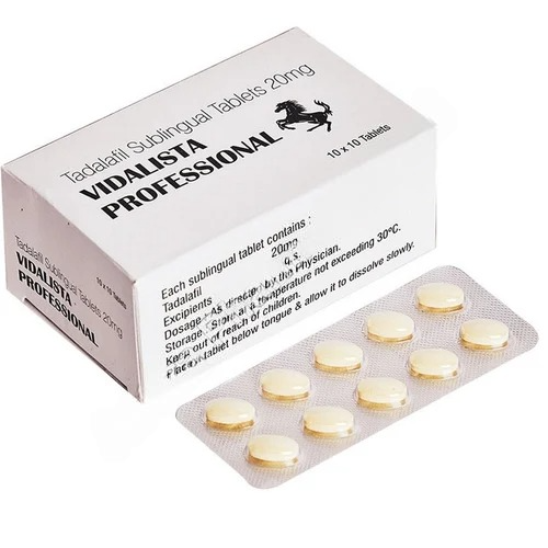 Vidalista Professional tablets or Tadalafil 20 mg Soft tablets are sublingual drugs used to treat erectile dysfunction and symptoms of benign prostate enlargement. The tablet also treats pulmonary hypertension. It is a phosphodiesterase (PDE-5) inhibitor. It prevents the enzyme called phosphodiesterase 5 (PDE5) from being active too fast. The medicine treats men with erectile dysfunction, also termed sexual impotence. The enzyme flows the most in the penis. In erectile dysfunction, the medication works by increasing blood flow to the penis by relaxing the muscles in the penile blood vessels. When sexually excited, the blood flow reaches the man’s penis and causes an erection. In case a man has erectile dysfunction, the penis does not harden and expand during sexual activities. It happens to men at times, and it’s absolutely natural. But when the condition remains persistent, that is a problem. The same concern hits when the erection does not last. Vidalista Professional tablets help control the enzyme and enable an erection with improved blood flow to the penis. It requires sexual stimulation for the medication to show its effects.